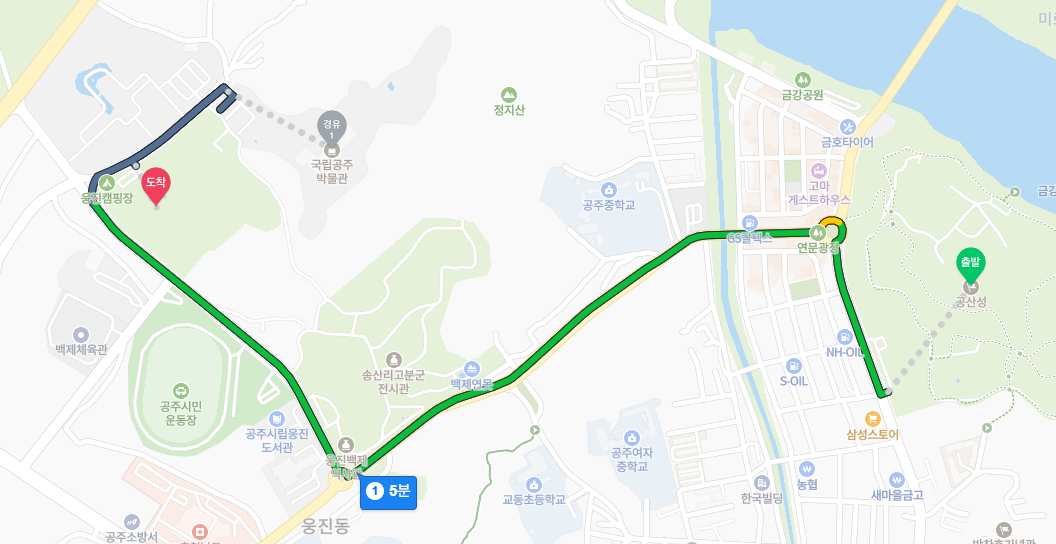 • 시내버스(공주 104, 105번 등) 이용 가능