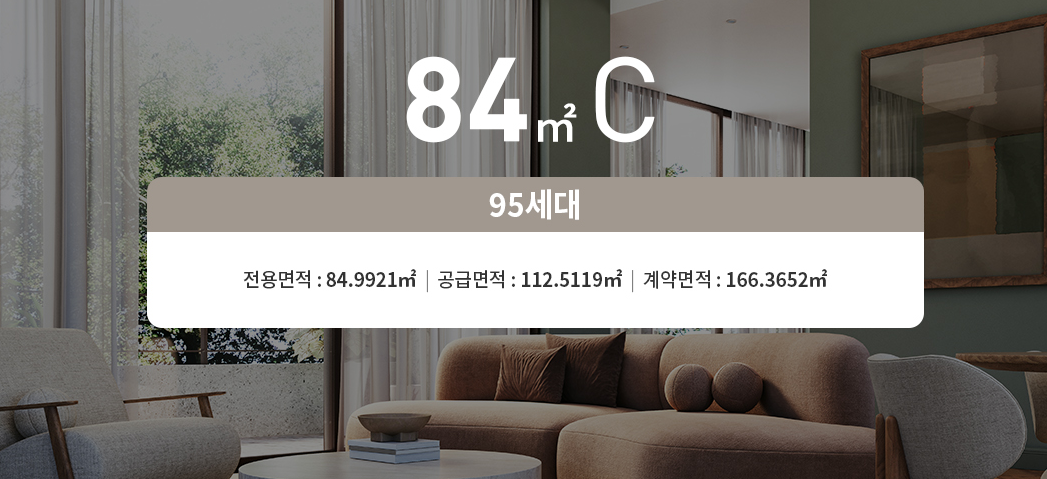84C는 A랑 데칼코마니예요. 차이점은 안방에 창이 하나 더 있어서 끝쪽에만 있고 그래서 세대수가 적어요. 총 95세대/일반공급은 46세대입니다. C타입도 A처럼 주방강화플러스 옵션이 가능하고 알파룸과 침실이 84A타입보다 넓어요.
